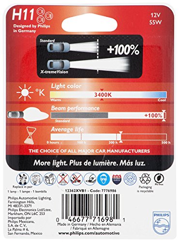 Philips H11 X-tremeVision Upgrade Headlight Bulb, 1 Pack