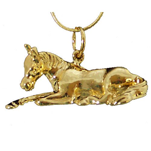 Studio : Intrepid International Publisher : Intrepid International Binding : Misc. Product Description The Exselle Resting Foal Pendant is a delightful and adorable pendant featuring a foal at rest. This little foal has one foreleg forward the other folded back.The foal's head and ears are up as though something may have just caught his attention. What a lovely gift this necklace would be for that special person in your life. The Exselle Resting Foal Pendant is available in gold plate or platinum finish with a matching woven cable with a lobster claw clasp. 0