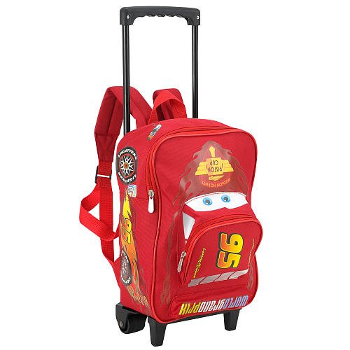 The Cars 2 12-inch Rolling Backpack - Mater features: Includes 1 backpack Main and front compartments close with a zipper Plenty of room for all of your necessary school supplies or a lunch Made from durable fabric Ergonomic, adjustable shoulder straps Locker loop lets you hang it up when not in use Extendable tote handle and rolling wheels Backpack is decorated to look like Mater, right down to a tow hook Dimensions: 10 x 12 x 4 inches SKU: 10FCAC2C UPC/EAN/ISBN: 693186313660 Manufacturer #: CA40881-TR-AS Product Weight:1.5 pounds Product Dimensions(in inches)14.3 x 9.2 x 5.3