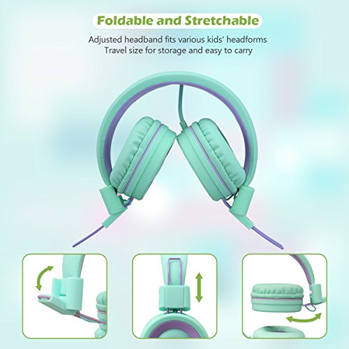 -. Binding : Kitchen -. Brand : KeeKit -. Color : Green and Purple -. Feature : Custom Design for Kids & Teenagers - On-ear headphones has padded soft cushions and protein earmuffs filled with elastic sponge, comfortable for long wear. Besides, compact earmuffs reduce the noise interference effectively, offer clear tone quality. / Child-friendly Care & Safety - Made with food-grade material and tangle-free cords, soft touch, environment-friendly and children-friendly material, flexible and durable headband is available to be bent without deformation. Bright and colorful outlook appeals to kids' interest. / HD Microphone & One button Control - One button at the in-line controller that can control music playing and call by fingertip. Built-in microphone supports call, online voice communication and interactive learning. / Foldable & Adjustable & Lightweight - Easy and convenient to carry and store. Stretchable headband that can be adjusted freely to fit children of all ages / Universal Compatibility - With the standard 3.5mm headphone jack, this kit headset works with virtually all smartphones, tablets, such as Apple iPhone, iPad Mini, Samsung Galaxy Phones, Lenovo, Kindle Fire, Android Cellphones, Tablets and so on. -. Label : KeeKit -. Manufacturer : KeeKit -. MPN : 43196-13016 -. PartNumber : 43196-13016 -. ProductGroup : Home -. ProductTypeName : TOYS_AND_GAMES -. Publisher : KeeKit -. Studio : KeeKit -. Title : KeeKit Kids Headphones, Wired On-Ear Headset, Noise Reduction School Headphone, Foldable Stereo Earphone with Tangle-free 3.5mm Audio Jack, Microphone, In-line Controller for Children & Teenager