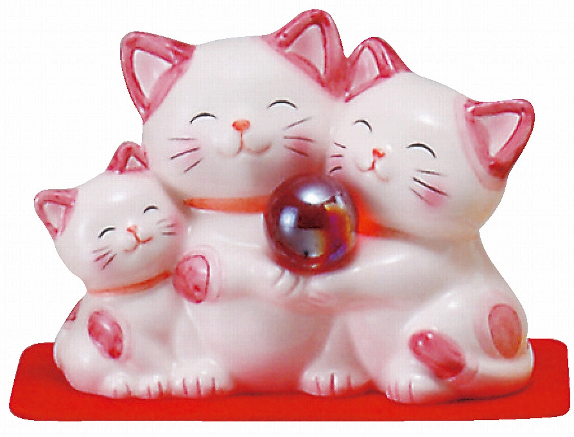 Cat figurine Good luck Marriage love and home improvement luck Happy Cat parents Pink