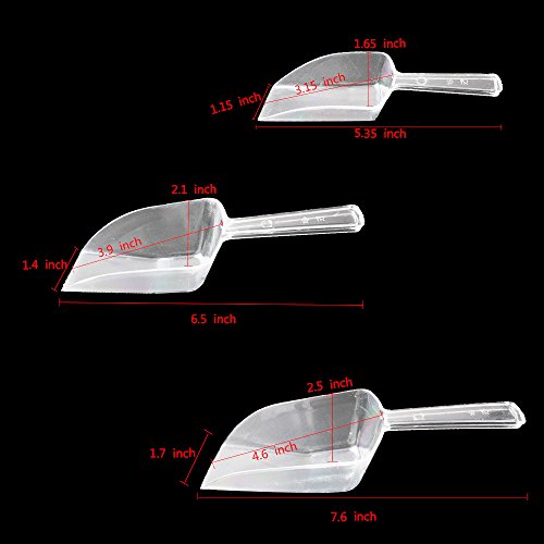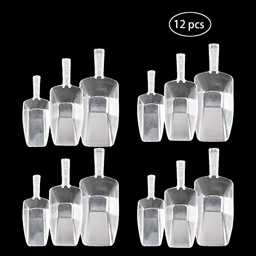 - Package includes 12 pcs clear polycarbonate scoops come with 3 different sizes