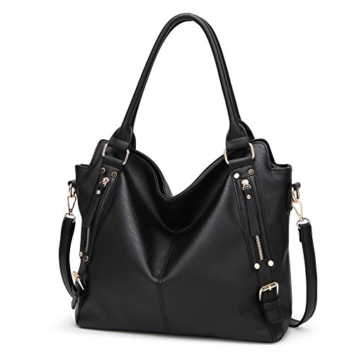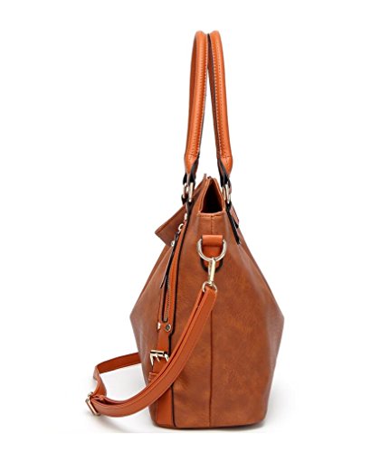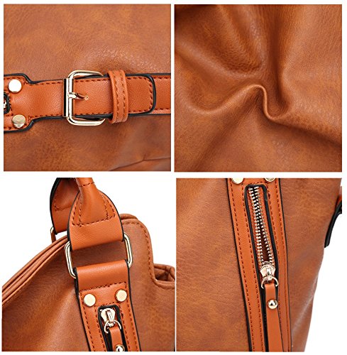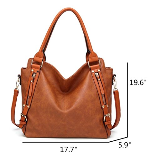 -. Feature : Material: High quality soft PU leather, Decorative Gold-tone Hardware. Durable and Fashionable, washable, smooth and delicate texture. Top zipper closure, easier to zip or unzip / Size 17.7"X5.9"X19.6", Large capacity, easily carry your 14 inches laptop, A4 file, mobile phone, wallet, cosmetic, IPAD, umbrella and other daily things / Strap: Tubular top handles with dual buckles design(7.2¡±, Long enough to put on shoulder), comes with an adjustable and removable shoulder strap. You can use it as a leather handbags, shoulder bags, crossbody bag, top-handle bag, tote bag or clutch purse. / Structure: Divide main compartment, 1 big zipper pocket in the middle, 1 small zipper pocket and 2 small open pocket for your phone, key or cards / Unique Design with 2 side belt and zippered decoration, Perfect for office, school, dating, casual, work, party, travel, business or any other daily occasions. No matter for university students or office lady, It is a perfect choice