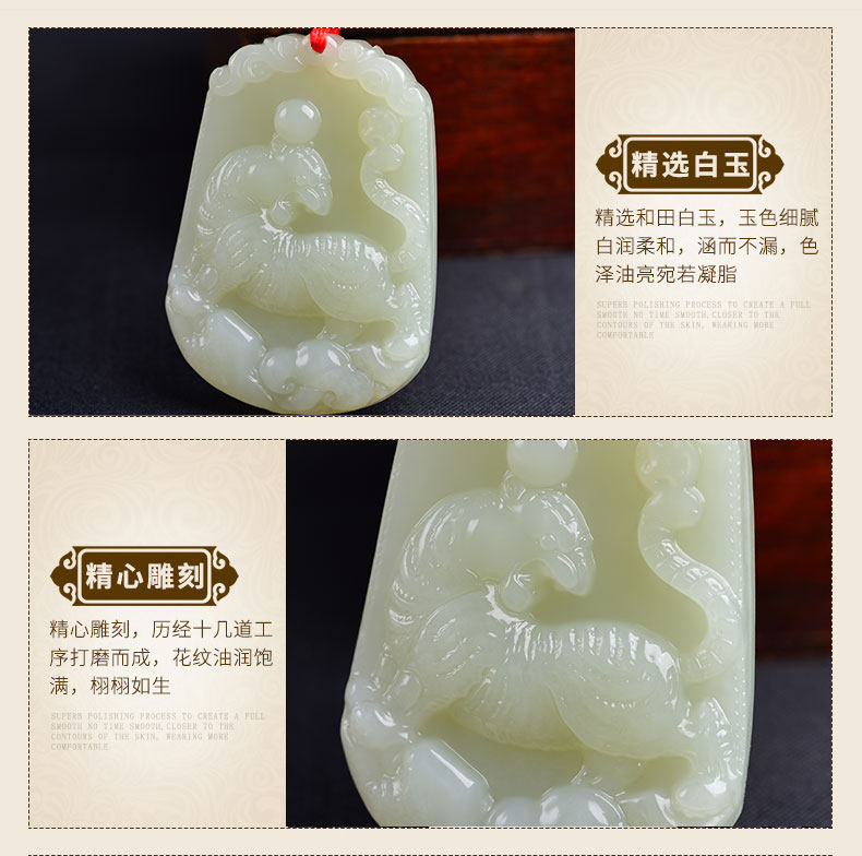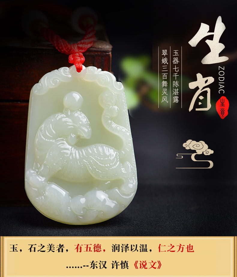 开光和田玉十二生肖吊坠属虎白玉挂件男女款项链玉坠玉佩饰品礼物