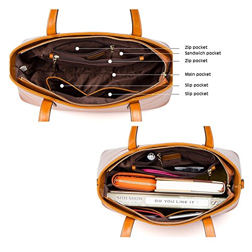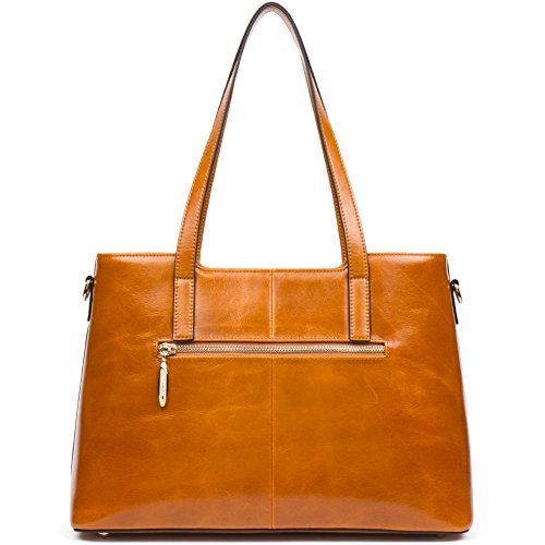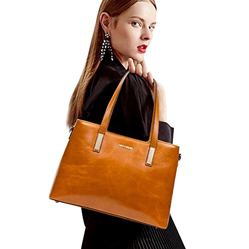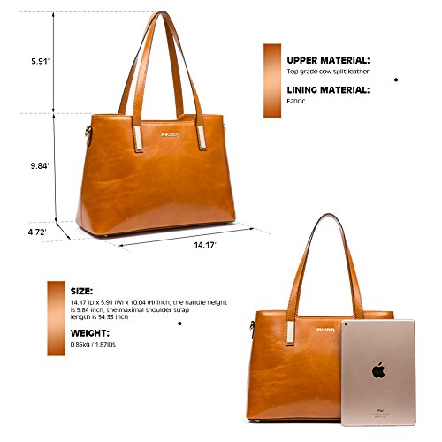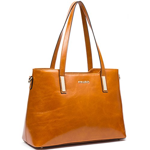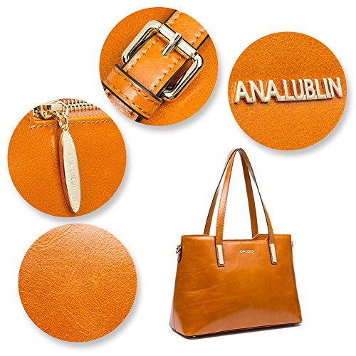 -. Feature : BEST WAX LEATHER: Selected first layer cowhide, processed with particular oil tanning craft, made by professional artisans with more than 20 years of experience. With fine and smooth hand feel, natural and distinct leather texture, this soft and more wear-resisting wax leather will get more texture and oil luster after long use. / DELICATE & PRACTIAL: Best wax leather, durable fabric lining, and light gold custom antioxidant hardware, handmade by professional artisans. With concise and elegant appearance, exquisite and close sewing craft, golden metal rivet protective bottom, this high quality women handbag not only is beautiful and decent, but also can reduce the wear of everyday use. / HIGH CAPACITY: This elegant handbag includes 1 main compartment, 2 inner slip pockets, 2 zip pockets, 1 sandwich pocket and 1 back zip pocket, easily organize and carry your Mini IPAD , iPhone6s Plus, wallet, cosmetic, umbrella and other daily things. It is sturdy and comfortable, perfect to use as daily handbags for working, shopping, or dating. / SIZE: 14.17 (L) x 5.91 (W) x 10.04 (H) inch, the handle height is 9.84 inch, the maximal shoulder strap length is 54.33 inch, 0.85kg / 1.87lbs, relative lightweight genuine leather handbag, perfect for charming and elegant women and ladies. / ITEM NUMBER: A1172142Kbrown; if you need to select more, please click ANA LUBLIN in blue color above the item title.