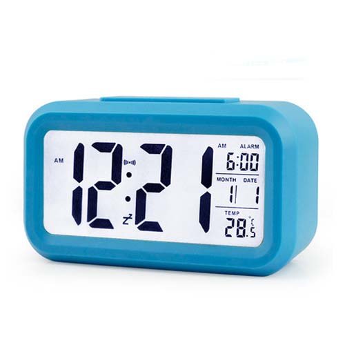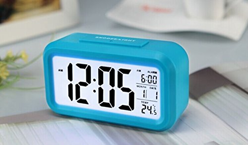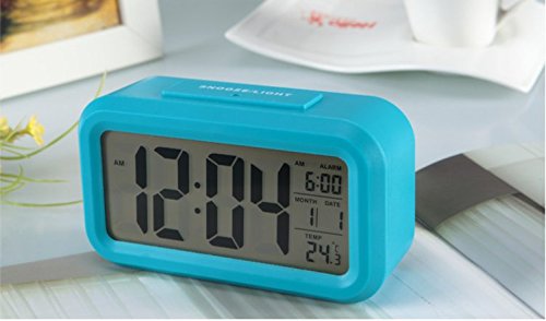 - Title : Soondar® Digital LCD Large Screen Desk Bedside Alarm Clock with Snooze Light Function Batteries Powered for Children Women Elderly People - BLUE