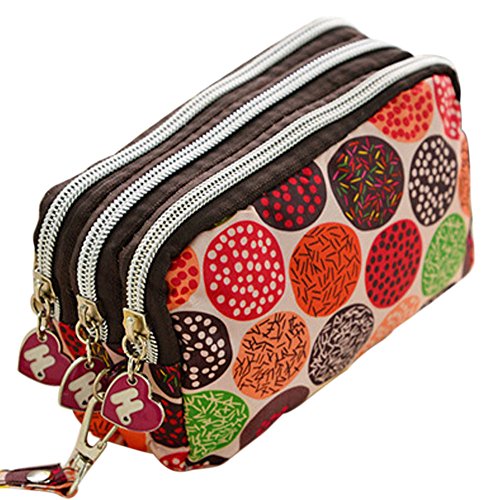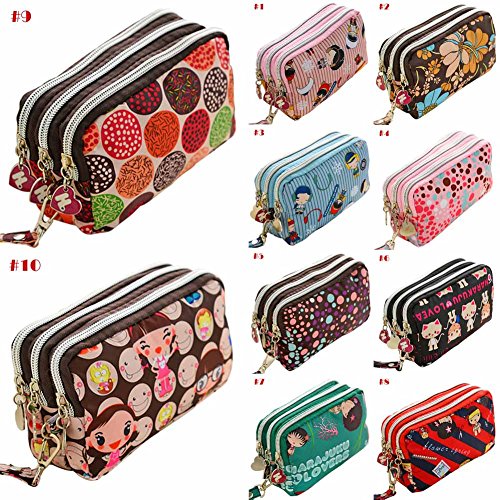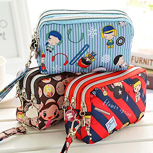 -. Title : ACTLATI Women Triple Zipper Change Purse Waterproof P.R.Inted Fabrics Coin Case Cute Handbag Wallet Cellphone Pouch Cartoon Key Bag