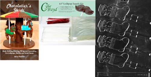 Cybrtrayd Snowman in Stocking Lolly Chocolate Mold with Chocolatier's Bundle of 25 Lollipop Sticks, 25 Cello Bags, 25 Red Twist Ties and Chocolatier's Guide
