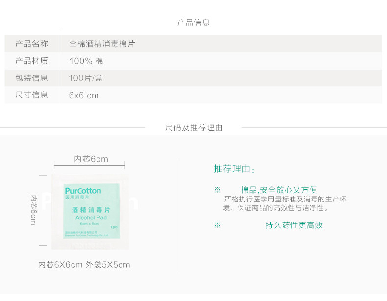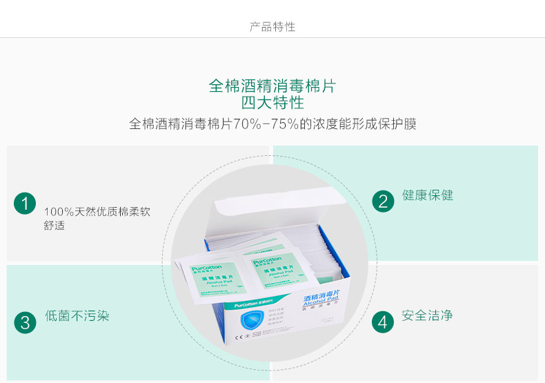 Product Specifications Product Name: Cotton era cotton PurCotton Packed alcohol disinfection cotton sheet (100 / box) Item: 800-000046 Size: 6cmX6cm Weight: 130g / box Material: 100% cotton spunlace non-woven, liquid disinfection agent ethanol packing: 1 / bag, 100 / box product description 100% cotton spunlace non-woven, refined processing liquid disinfectant ethanol, the ethanol concentration of 70% to 75%; independent thin foil sealed packaging, moisture long, easy to carry and easy to use tear; portable players anytime, sterilization, to provide you with 360-degree protection; product close to high quality of life often use wipe the phone, watches, jewelry, remote control, clean assured; clean baby toys, public and other dishes, clean people meet more requirements over the top; around the wound disinfection, relieve itching mosquito bites, to provide you with 360-degree security.