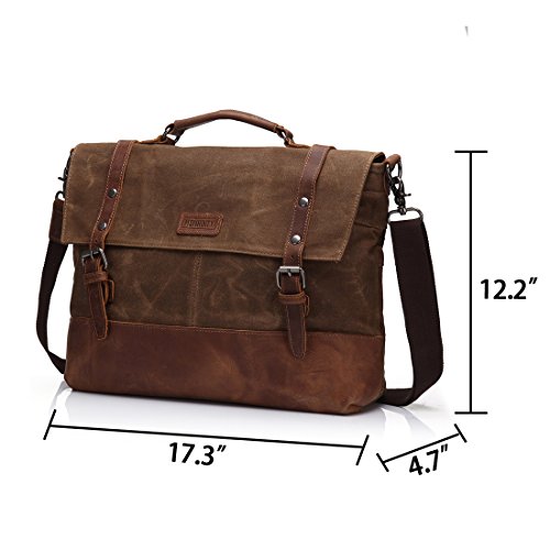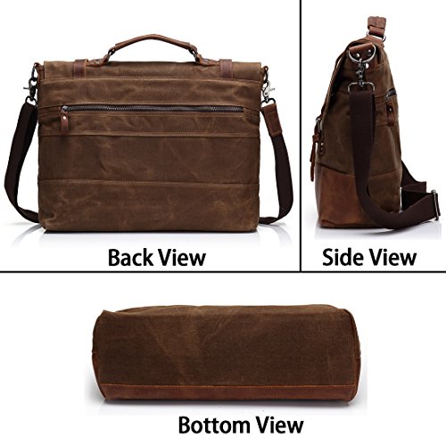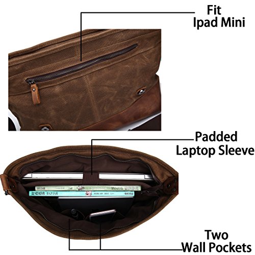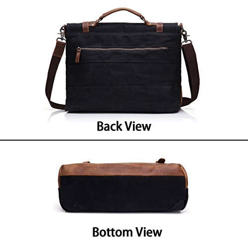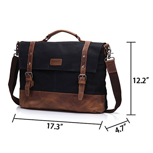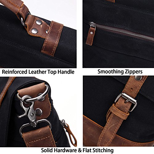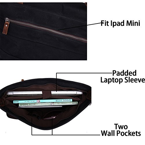 -. Feature : WAXED WATERPROOF CANVAS: Made of premium quality black 16 oz waxed water resistant canvas (high density) and genuine cowhide leather, heavy duty gun-metal hardware and smooth zippers, this waterproof & red crossbody messenger bag can stand wear and tear. The shoulder strap is reinforced with top layer leather. This one shoulder bag is durable to hold up whatever you put in and for your long time use. / FULLY FUNCTIONAL POCKETS: Under the flap, there is a zipper pocket (fits IPad Mini) and a spacious main compartment with zippered closure which offers 2 inside small wall pockets for phone or notebook, 1 laptop compartment for tablet, laptop or MacBook, plenty of space to hold things such as A4 paper, books, clothes or other important belongings for all day use. At the back of the shoulder messenger bag, there is a rear zipper pocket for handy valuables like IPad/wallet. / LARGE CAPACITY AND PERFCT SIZE: Dimension: 17.3"x12.2"x4.7" (44 x31 x12cm), Laptop compartment: 15.7"x9.0"x1.2" (40 x23 x3cm), Front zipper pocket: 9.8"x6.3"(25 x16cm), Back pocket: 12.6"x9.1" (32 x23cm), Adjustable shoulder strap length: 29.5"-54.3"(75cm-138cm). / FABULOUS AND EASY TO CARRY: It's A briefcase tote hand bag with leather handle on the flap, A messenger bag front closure by 2 leather straps with buckle and magnet button closure, A shoulder bag with a removable adjustable strap, A large canvas business briefcases for men. This everyday messenger bag fits youth and old for school, work, business, dating, traveling or daily going out. It is good both as a present and for personal use. It is a nice gift for your husband, your son or friends. / 12 MONTHS MONEY-BACK GUARANTEED: 365 days free exchange and returns. If for any reason you're not 100% SATISFIED, please let us know and our customer service team will make things right: full refund or a free replacement, whichever you prefer.