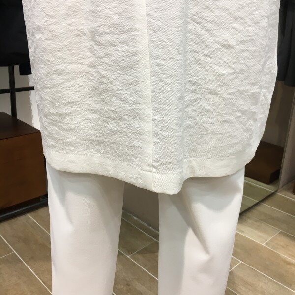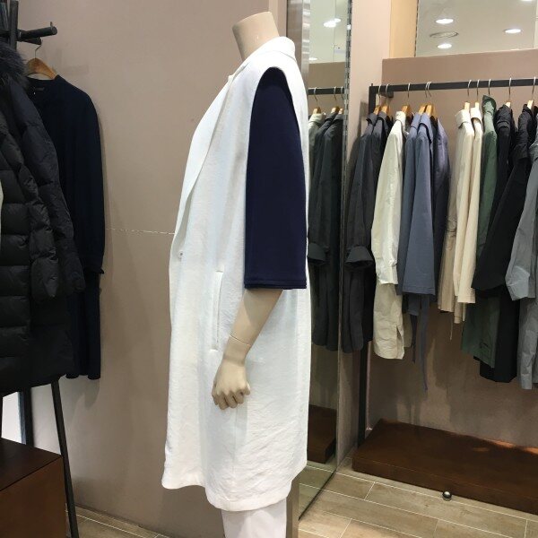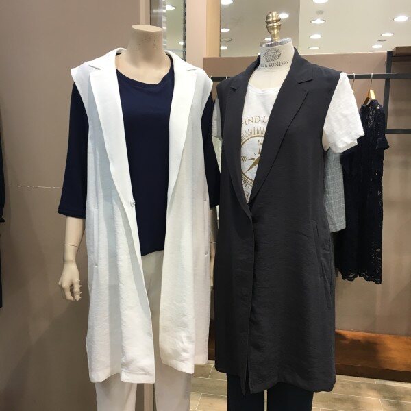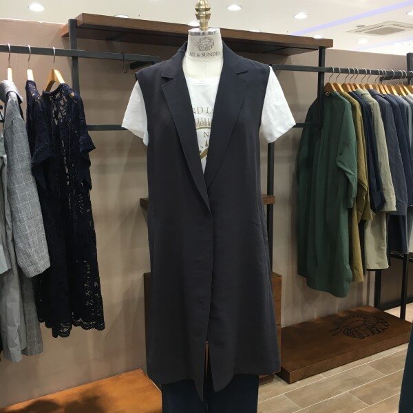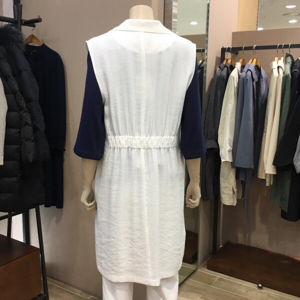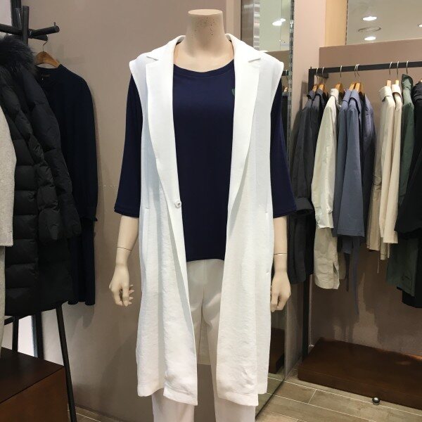 마혼방 소재의 정장조끼 느낌이 나는 VT입니다. 깔끔한 색감과 디자인으로 우아한 무드를 풍기기에 안성맞춤이구요. 캐쥬얼이나 격식있는곳 어떤코디로도 잘 어울리는 아이템이에요. 블라우스나 티셔츠에 요 조끼 하나만 입어줘도 느낌있는 스타일이 된답니다. 긴 카라넥라인과 뒷쪽 허리에 밴딩이 들어가 있기 때문에 몸매라인이 굉장히 이쁘게 연출되요 ~ 총장길이는 55사이즈 기준으로 93cm 입니다