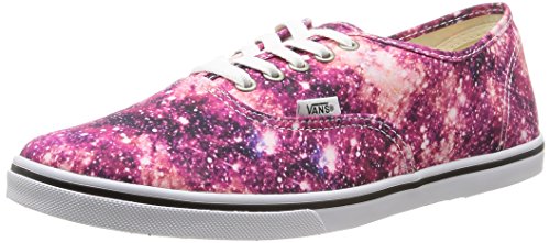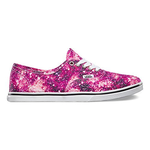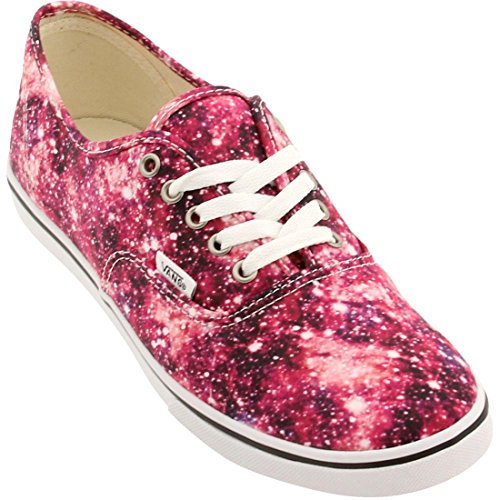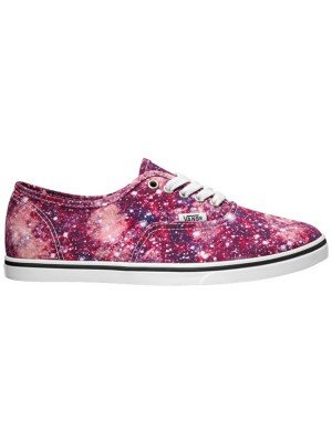 The Cosmic Cloud Authentic Lo Pro, a low top lace-up with a slim silhouette, features printed canvas uppers with low sidewalls, metal eyelets, and low profile micro waffle outsoles for a lightweight feel.