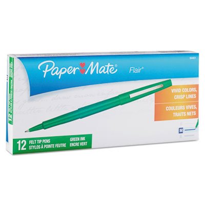 -. Title : Point Guard Flair Porous Point Stick Pen, Green Ink, Medium, Dozen, Sold as 12 Each