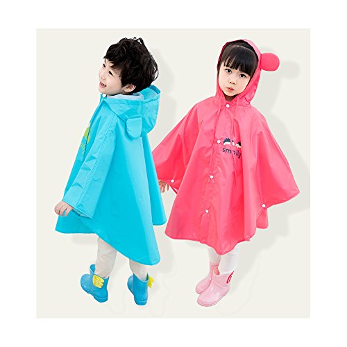 Age 4~14 Children Hiking Outdoor Raincoats kids Hooded Poncho Rainwear (S, rose Red)