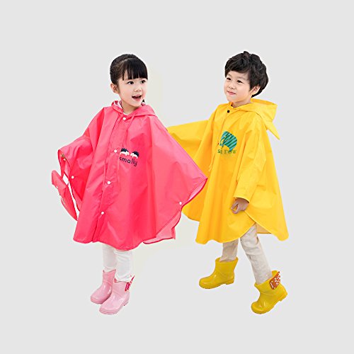 Age 4~14 Children Hiking Outdoor Raincoats kids Hooded Poncho Rainwear (M, yellow)