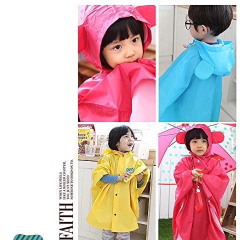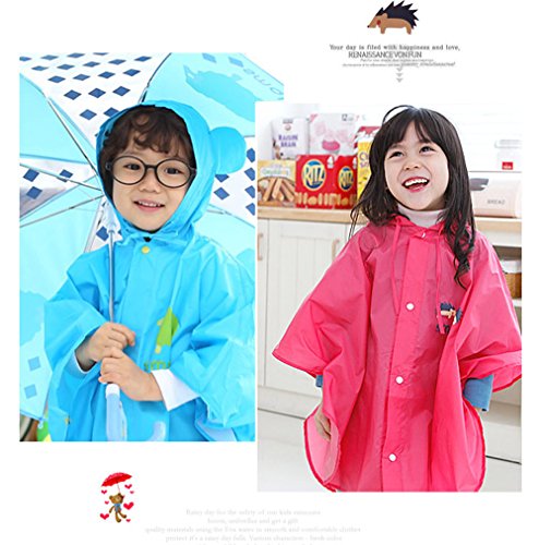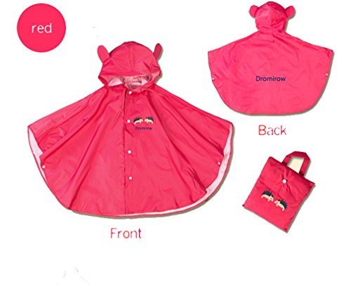 Age 4~14 Children Hiking Outdoor Raincoats kids Hooded Poncho Rainwear (M, rose Red)
