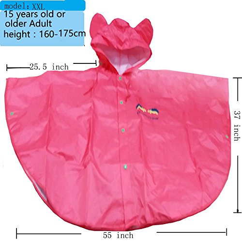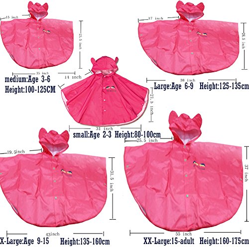 Children Raincoats Hooded Poncho Hiking Outdoor Boys Girl Rainwear Cloak Age 15...Years (XXL, rose Red)