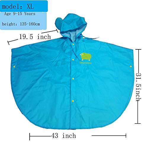 Age 4~14 Children Hiking Outdoor Raincoats kids Hooded Poncho Rainwear (XL, blue)