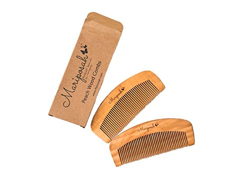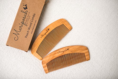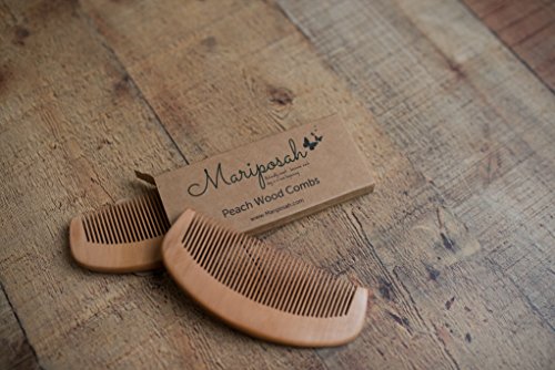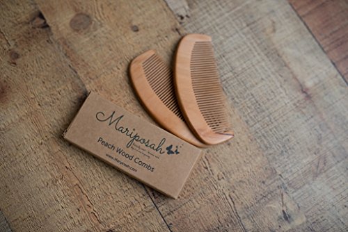 Mariposah Peach Wood Comb 100% Biodegradable, Hair and Beard Combs, Environmentally Friendly, Static-Free, Natural, Sustainable, 2 pack