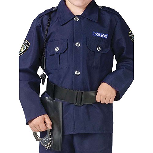 -. Brand : Fun World -. Color : Blue -. Department : boys -. Feature : Available in Sizes: Medium and Large / Item Includes: Shirt, Pants, Hat, Belt with Holster, Whistle and Lanyard / Pictured items not included: Shoes / Material: Polyester -. Label : Fun World -. Manufacturer : Fun World -. PackageQuantity : 1 -. ProductGroup : Apparel -. ProductTypeName : APPAREL -. Publisher : Fun World -. SKU : WC24518 -. Studio : Fun World -. Title : Policeman Kids Costume
