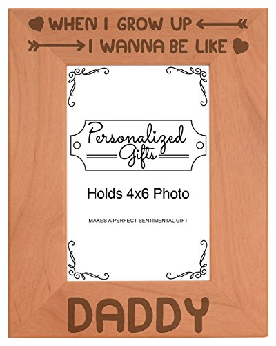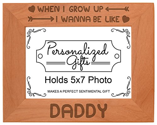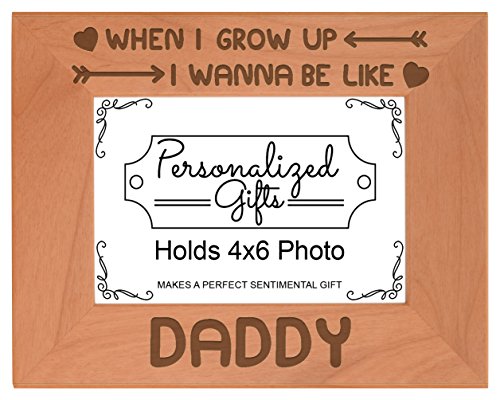 -. Binding : Kitchen -. Brand : Personalized Gifts -. Feature : A perfect Father's Day gift or gift for a child to show their love for Dad. / Made from real wood, this natural frame will have its own unique coloration and wood grain pattern. Therefore, product may vary slightly in appearance from image shown. / Frame includes a glass front and can be displayed hanging or standing with built in hook and easel. / This beautifully crafted picture frame is designed and engraved in the USA. / Engraving and frame color may vary slightly, as each piece of wood is unique. -. Model : A-P-L-AWF-0317 -. ProductGroup : Home -. ProductTypeName : HOME -. Title : Fathers Day Gifts Wanna Be Like Daddy Natural Wood Engraved Photo Picture Frame