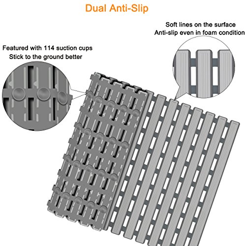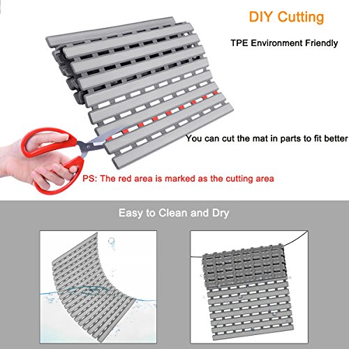 Studio : Global-store Publisher : Global-store Binding : Health and Beauty Product Description Features: ?Professional soft texture on the surface, you can enjoy a cosy feet massage during standing which can effectively promote blood circulation. You can put it under your desk to help relieve the fatigue of work, which also apply to kitchen(Notice: Don't bend the mat over 30°) ?Featured with 114 strong suction cups which stick to the ground better, make a difference in preventing tumble. Adapt to high and low temperature, not easy to deform ?Rapid drainage design, the water drains out after use so mold does not form. Bear durably dirty good tidies up into its merit, dry quickly to avoid the growth of bad bacteria ?You can cut the mat in parts to fit doorway, tub, floor better. Environment friendly premium plastic for long-term service, non-toxic and healthy for you ?16×25Inch, plus for bathroom, bathtub, shower, kitchen, toilet, veranda, etc. Handy cylinder pack with rope, ideal gifts for family and friends Specifications: Product name: Global-store Bath Mat Size: 16×25Inch Body color: Grey Item Weight: 886g Application: Bathroom, Bathtub, Kitchen, Toilet, Veranda Package Weight: 961g Material: PP TPE Environment Friendly Attention: ★Notice: Don't bend the mat over 30°. ★When you cut the mat, please follow the pictures we showed in product's Amazon listing. ★The new mat may has smell in the package, please expose the mat to dry air to emit the smell. Package includes: ?1× Global-store Bath Mat ?1× Plastic Waterproof Shell If there is anything puzzles you about the listing page, please feel free to contact us. Global-store brand products have been well tested before delivery, but we cannot 100% guarantee the items when delivered to you. Any problem please feel free to contact us through Amazon Email System and we will do our best to serve you. 0