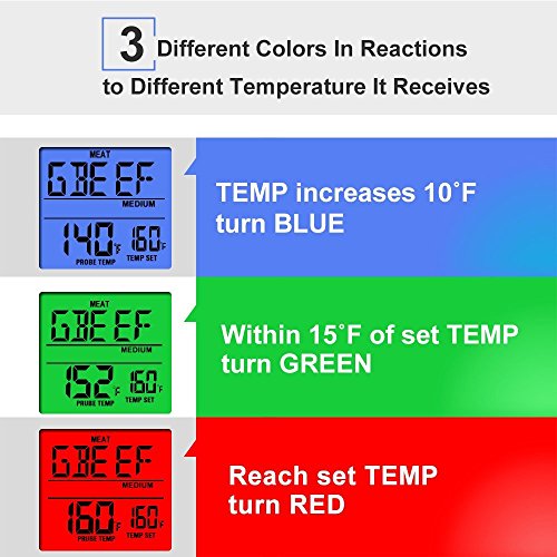 - A traditional alarm, that will emit a beep when your set temp or timer is finished. A colored light system which changes colors as during different stages of the cooking process.