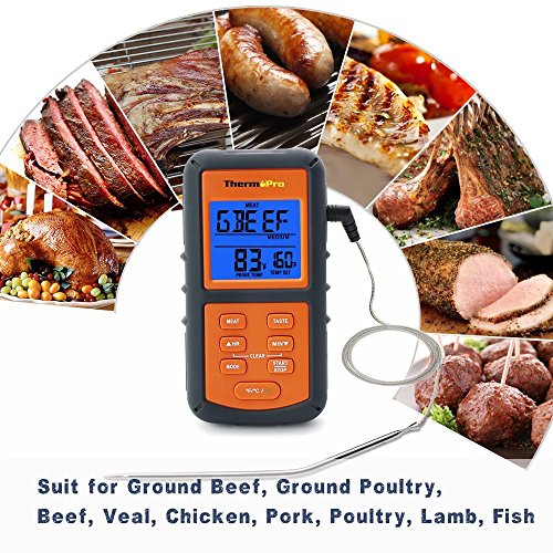 - Programmed with 9 types of temperature settings for a variety of common meats, such as beef, veal, chicken, pork, poultry, lamb, fish, ground beef and ground poultry.