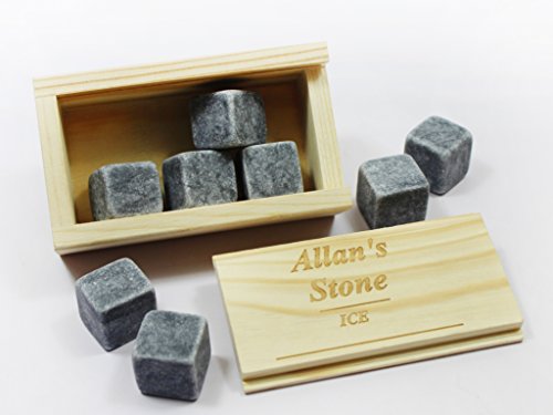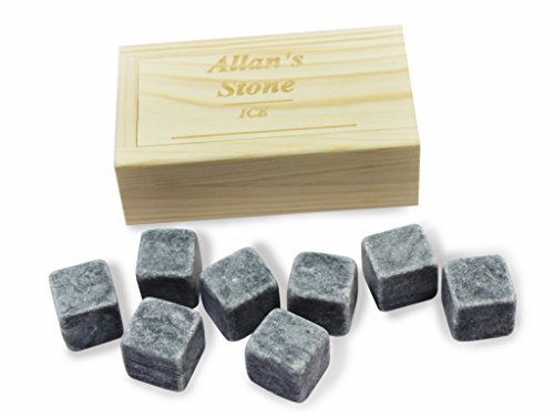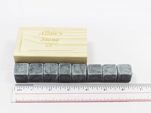 -. Title : Allan Whiskey Stones Set Natural Marble Beverage Chilling Rocks Set of 8 in Wooden Box FDA Approved