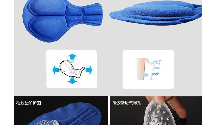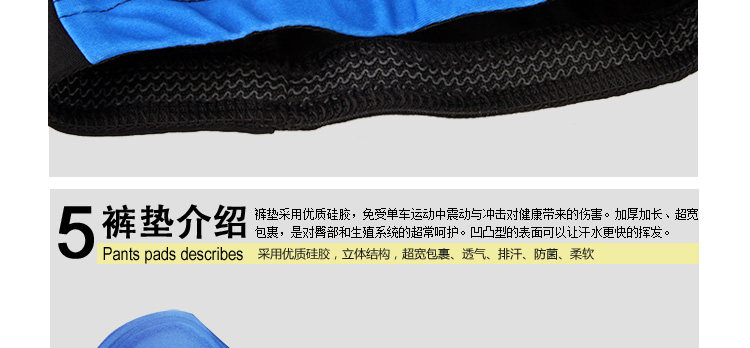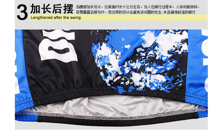 Size: S, M, L, XL, 2XL, 3XL Fabric: Clothes 100% Polyester, pants 80% PolyamiDe, 20% Lycra 3D silicone cushion, after a long campaign, it does not produce sweaty odor, convex type surface allows faster evaporation of sweat, from cycling in vibration and shock caused by chronic damage to health; high-quality ink , bright colors. Whole suit with three-dimensional cut, with a combined ergonomic, breathable soft, personal comfort