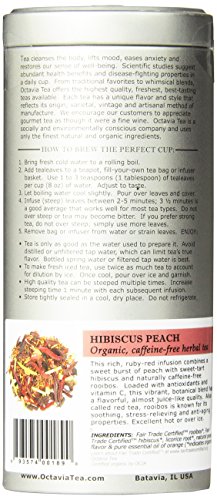 -. Title : Octavia Tea Hibiscus Peach (Organic, Caffeine-Free Red Tea/Rooibos) Loose Tea, 2.82-Ounce Tin
