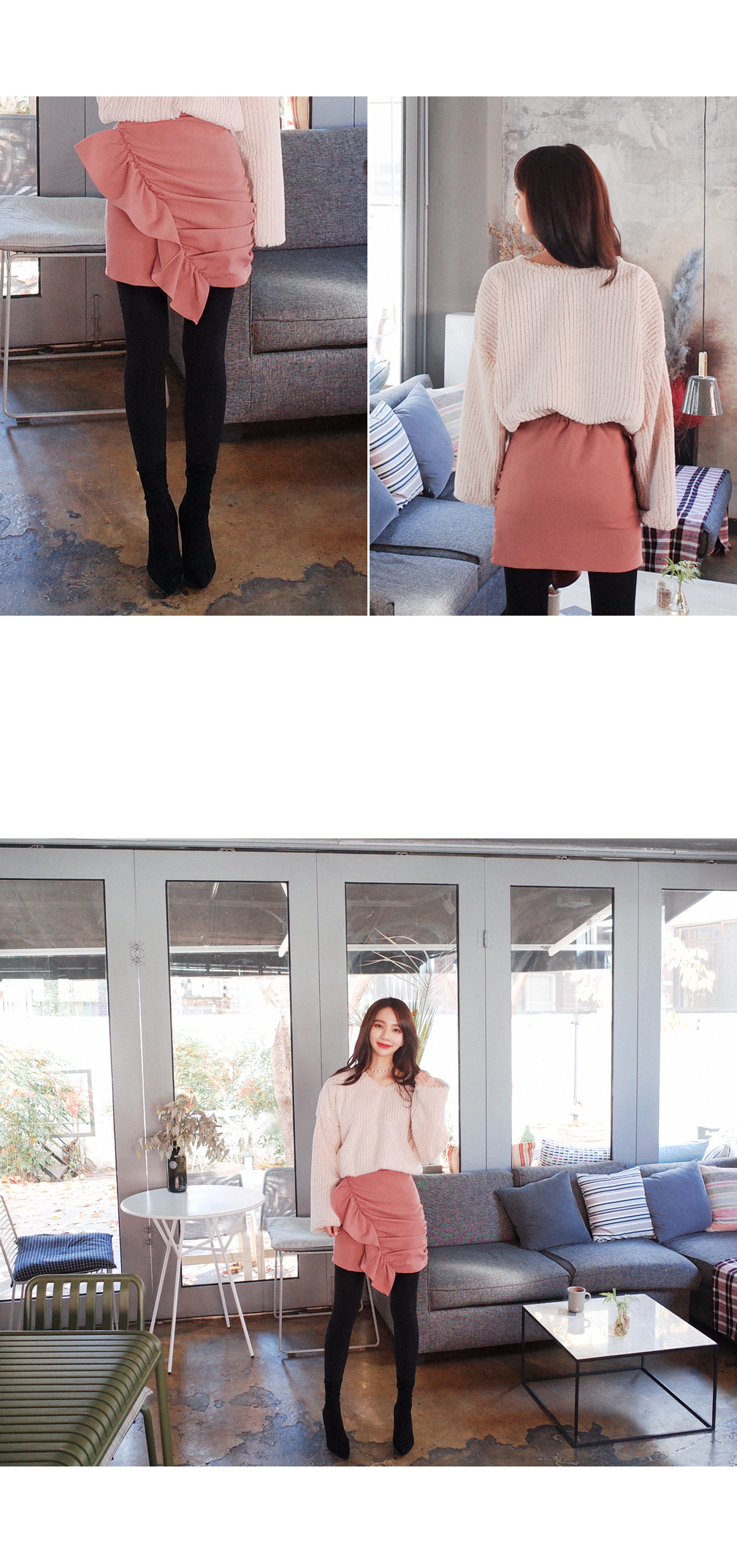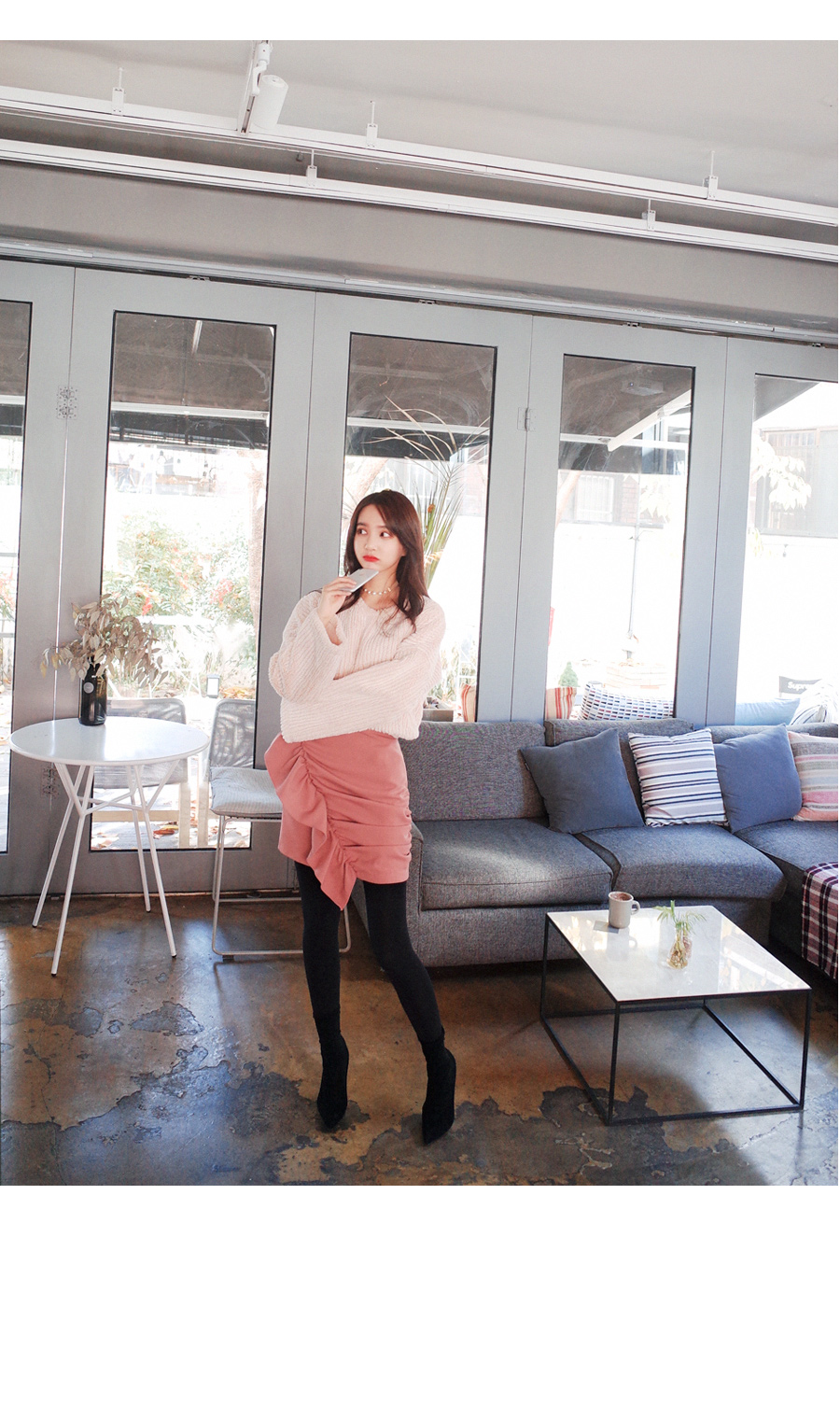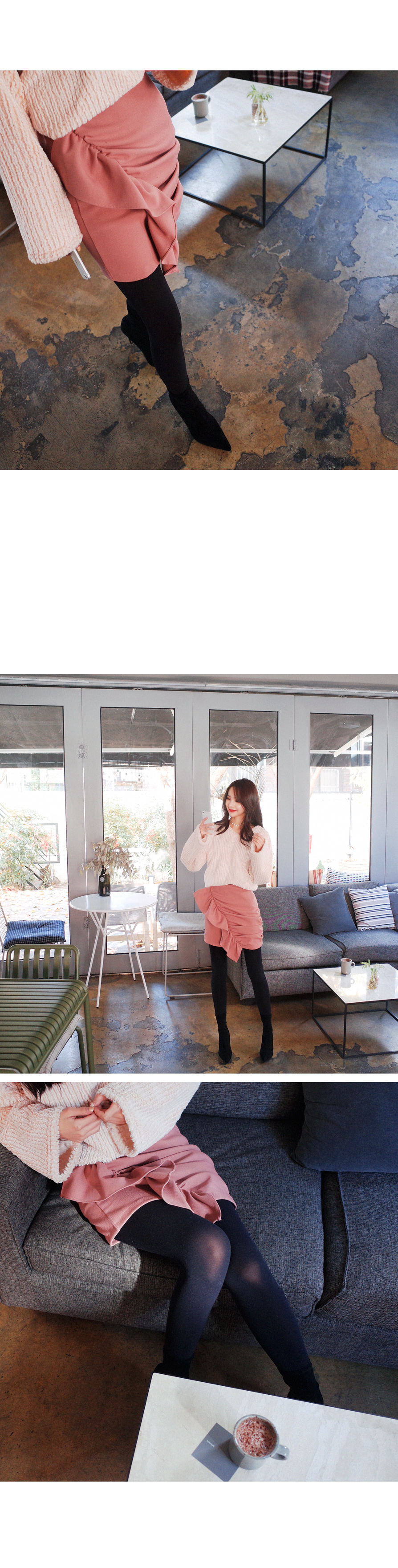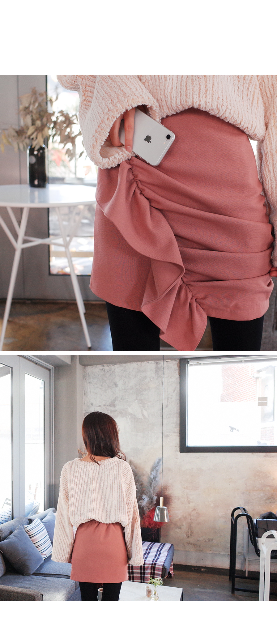 미니멀한 기장감으로 다리라인이 너무 예뻐보이는 스커트에요
