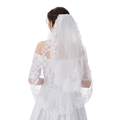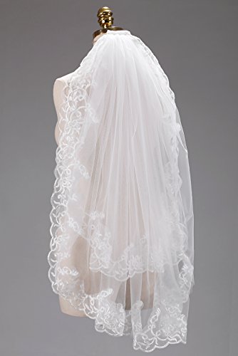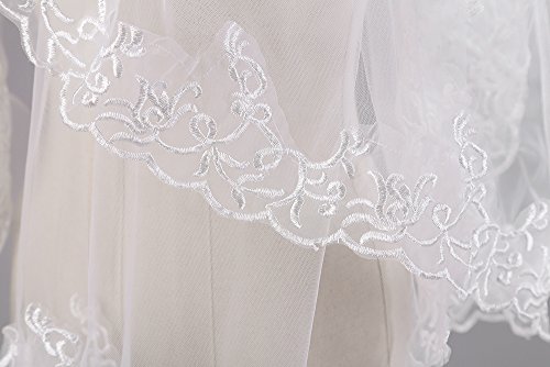 M Bridal Women's Appliques Tulle Edge 2 Layer Bridal Wedding Veils With Comb T057