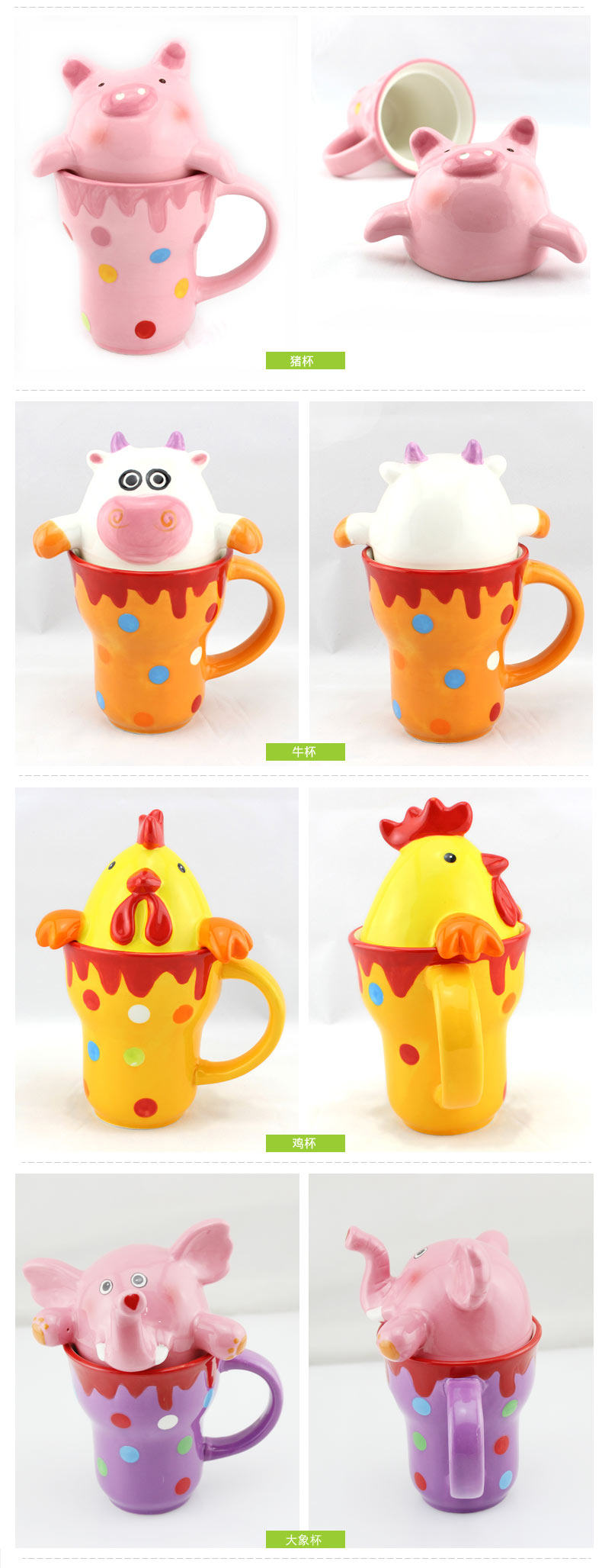 彩绘杯 可爱动物马克杯 大容量陶瓷水杯 情侣儿童牛奶咖啡杯
