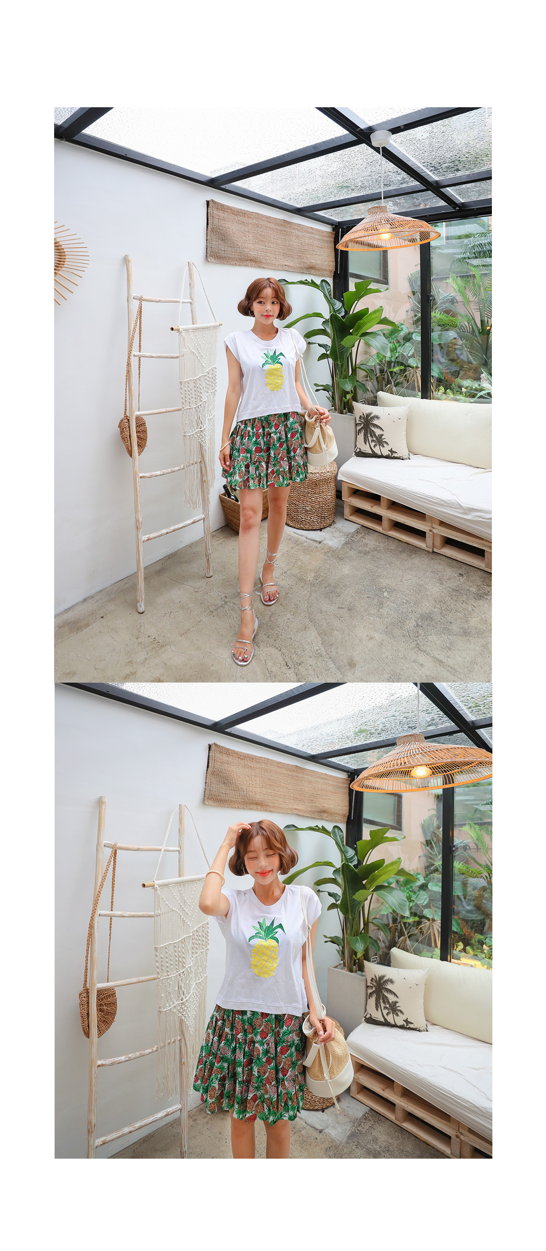 티셔츠는 파인애플 자수디테일로 퀄리티를 높였으며