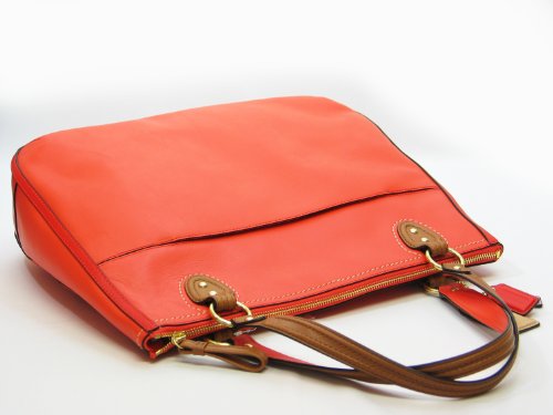 -. Feature : leather with fabric lining / double-handle with strap drop of 8" / Additional strapless with strap drop of 0" / zipper Closure / Dimensions: 15"W x 14"H x 4"D