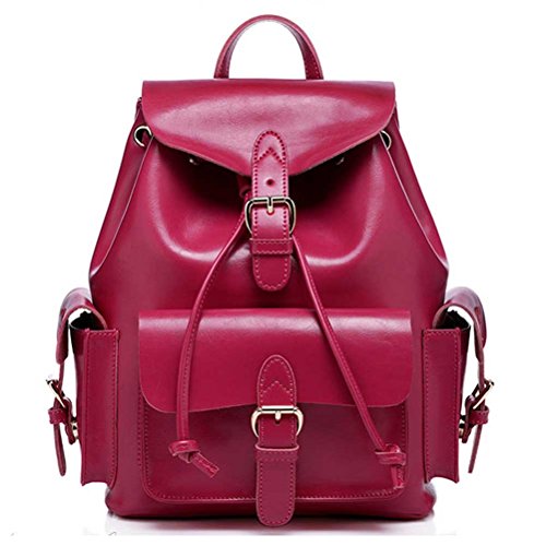 Title : Nasis Vintage Multifunctional Leather Schoolbag Laptop Backpack Rucksack AL5088 (rose)