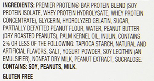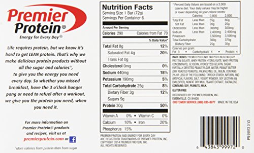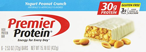 -. Binding : Health and Beauty -. Brand : Premier Protein -. EAN : 0643843999720 -. Feature : 30 grams of healthy protein / Three grams of fiber / 0 grams of trans fat and hydrogenated oils and no high fructose corn syrup -. IsAdultProduct : 0 -. Label : PREMIER NUTRITION -. Manufacturer : PREMIER NUTRITION -. Model : 00643843999737 -. MPN : 00643843999737 -. NumberOfItems : 6 -. PackageQuantity : 6 -. PartNumber : 00643843999737 -. ProductGroup : Health and Beauty -. ProductTypeName : HEALTH_PERSONAL_CARE -. PublicationDate : 2012-12-27 -. Publisher : PREMIER NUTRITION -. ReleaseDate : 2013-01-01 -. Studio : PREMIER NUTRITION -. Title : Premier Protein Nutritional Bar, Yogurt Peanut Crunch, 2.5 Ounce, (Pack of 6) -. UPC : 643843999720