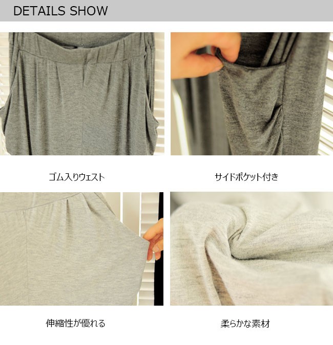 手触りの柔らかな生地と、ウエストのゴム仕様で、ゆったり楽ちんな優れもの。