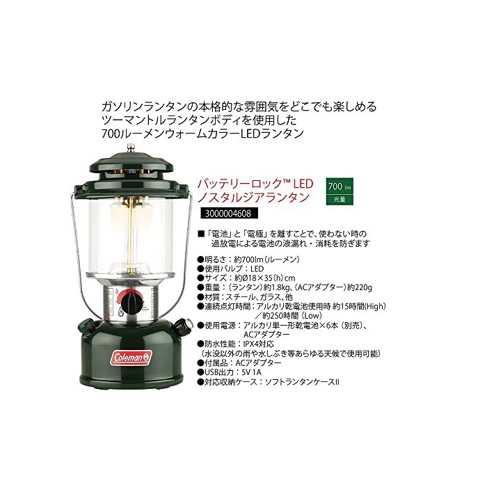 원본상품명: コ?ルマン ランタン バッテリ?ロックLEDノスタルジアランタン 3000004608