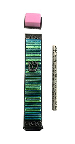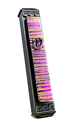 EASY MOUNT Art Glass Mezuzah, Easy Mount Indoor or Outdoor Weatherproof Metal Case Gift Box and Non-Kosher Scroll Included Hand Made in USA Guaranteed for Life! (Acordian Magenta)
