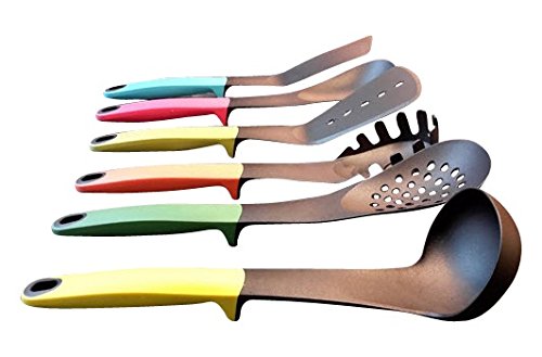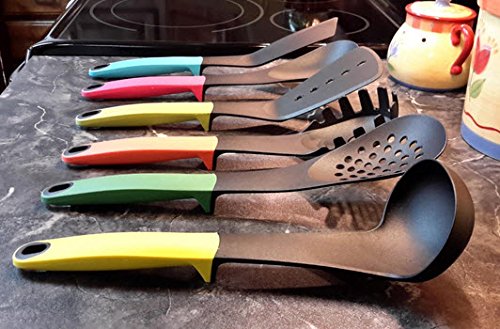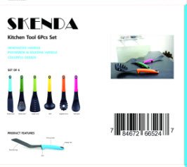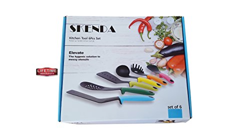 Studio : Jerves Enterprises Publisher : Jerves Enterprises Product Description The Skenda Home Kitchen Tools Set gives you the most essential home kitchen tools in one handy set at a great price. With our serving spoons set, you'll receive six handy kitchen tools: - 1 x Spatula - 1 X Turner Spatula - 1 x Slotted Spoon - 1 x Solid Serving Spoon - 1 x Ladle - 1 Spaghetti Spoon / Spaghetti Server Compared to other kitchen tools sets found on Amazon, the Skenda Home Kitchen Tools Set is simply the best that money can buy. Our cooking tools beat the competition because they're: - HEAT-RESISTANT. Our cooking utensils are made out of heat-resistant material for use at the stove and with hot foods. - NONSTICK. You never have to worry about the spatula or turner spatula damaging your cookware. Each of the kitchen tools has a safe, nonstick coating. - NO-MESS. The elevated kitchen utensils keep counter-tops free of drips and messes. - EASY TO CLEAN. You can wash each of the cooking tools in our kitchen utensil set in the dishwasher for effortless cleanup. - ERGONOMIC. Every tool from the slotted spoon to the spaghetti server has an ergonomic handle that is comfortable to grip. - COLOR CODED. The elevate kitchen utensils have different colored handles, so you can quickly tell the turner spatula apart from the ladle or the spaghetti spoon with a quick glance. - READY TO HANG. You can hang these kitchen utensils up by the convenient holes in their handles to ensure that your tools are always within easy reach. Prepare every recipe with the utmost of ease with the best kitchen utensil set on Amazon. Order the Skenda Home Kitchen Tools Set now. Buy with confidence now " better than money back " guarantee ( see product image ). 0