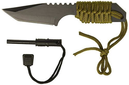 The SE KHK6320 Outdoor Tanto Knife with Fire Starter features a 440 Stainless Steel full tang, fixed blade construction that is 4mm thick and 7 inches in overall length with a 3-inch tanto point black finished blade. This knife is ideal for hiking, camping, emergencies, survival training, emergency evacuation kits, and more; even everyday use at home or on the road! This knife comes complete with a magnesium alloy firestarter with striker, nylon rope wrapped handle to give you a superior grip even in wet conditions, and a reinforced belted sheath with a pocket for the firestarter. Geared toward outdoor activity and rugged survival tasks, the SE KHK6320 Outdoor Tanto Knife with Fire Starter is a great hunting knife with flint that will serve its owner well. SE offers a wide variety of classic survival knives and rugged fixed blade knives. Make sure you purchased real SE product. This knife comes with the SE logo on the packaging as well as etched onto the blade. SE is a registered trademark protected by US Trademark Law.Feature