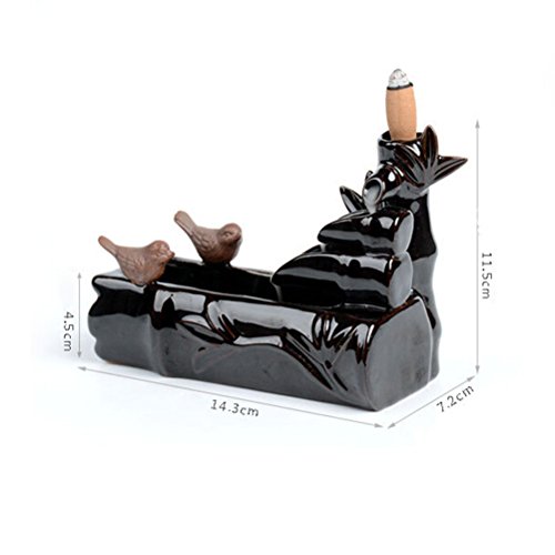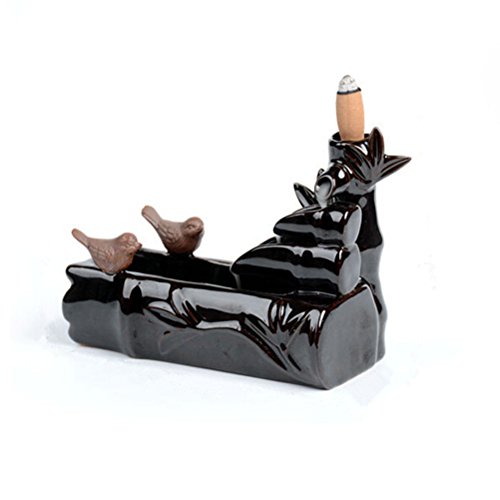 WINOMO Ceramic Incense Smoke Cone Burner Backflow Censer Tower Holder Birds Fly Together