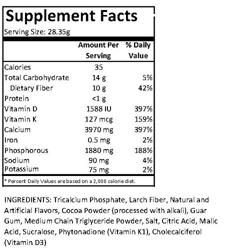 -. Feature : Powerful Blend of Fiber & Calcium with Vitamins D and K / Promotes Bone Health / Great Chocolate Strawberry taste, blends well with shakes and smoothies, or enjoy by itself / One Ounce, Once a Day