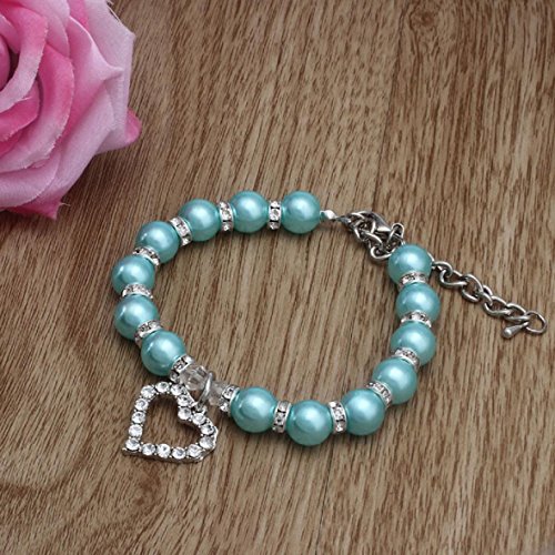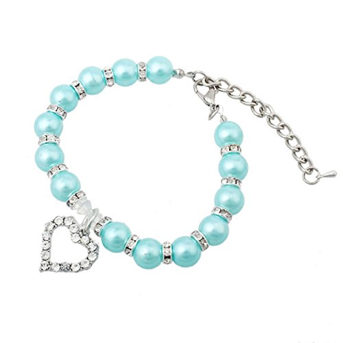 -. Title : Susenstone® Diamante Heart Rhinestone Pearl Necklace Pet Jewelry