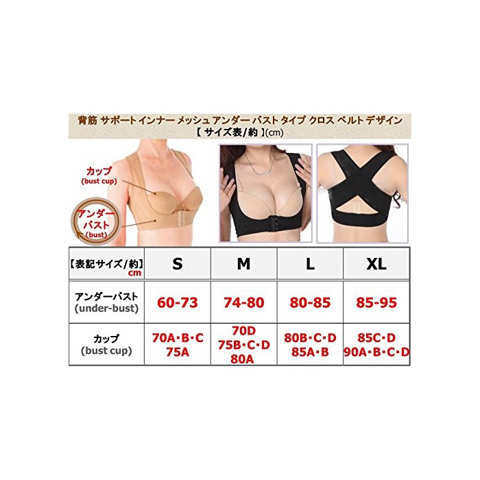 적응 사이즈:S 70A70B70C75A 언더 바스트 약60cm~73cm/M 70D75B75C75D80A 언더 바스트 약74cm~80cm / L 80B80C80D85A85B 언더 바스트 약80cm~85cm/XL 85C85D90A90B90C90D 언더 바스트 약85~95cm