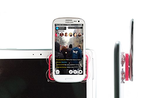 -. Feature : UNIVERSAL - This universal suction cup mount provides a simple mounting solution onto smooth glass surfaces for taking hands-free Live Streaming. / HANDS-FREE - Just attach the cups to any Computer Screen or tablet screen, then attach your smartphone to the front facing cups. Phone must have smooth back, or smooth case for proper suction. / PHOTOS - Also useful for pictures and video uses from a mirror, car window, exterior window, clean glass), where it will stick very strongly more a long period of time. Use a Camera Timer or Bluetooth Shutter remote. / SUPER STRONG - The small cups each hold one pound, so that's 4 pounds of hold on your phone. Also great for Face-time. / LIVESTREAM - Use Periscope, Meerkat, or Blab to stream your activities in real time. See our other gear for live streaming.