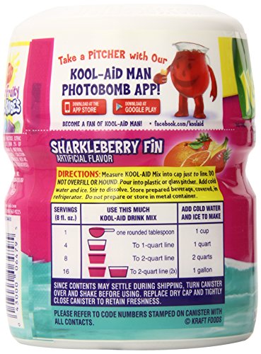 Enjoy the fun and delicious Strawberry, Orange, Banana flavor of Kool-Aid Sharkleberry Fin drink mix Artificial flavor