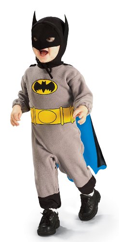 -. Feature : Includes Headpiece with removable cape and romper. / Inner legs have snap closure for easy on/off diaper changes. / Black, grey Soft flannel material. Yellow detail is embroidered on. / Infant (Size 1-2, 6-12 Months) Mftr. has changed sizing as above P.R.Imarily because many people still think "size" should match "age" as when univ. sizing began years ago, yet children are "grown bigger" today - AND costumes tend a bit small. So purchase b
